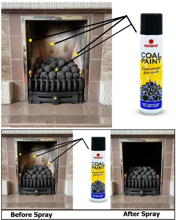 An ultra high temperature paint specially formulated for applying a decorative finish to new or for rejuvenating old ceramic coals used in gas fires. Coal Paint is colour fast up to 650 degrees celcius and is touch dry in 2-3 hours at room temperature. By Hotspot - The leading brand of stove and fireplace maintenance products.