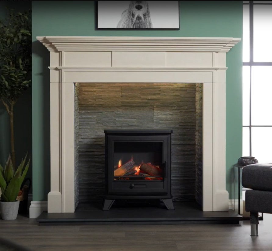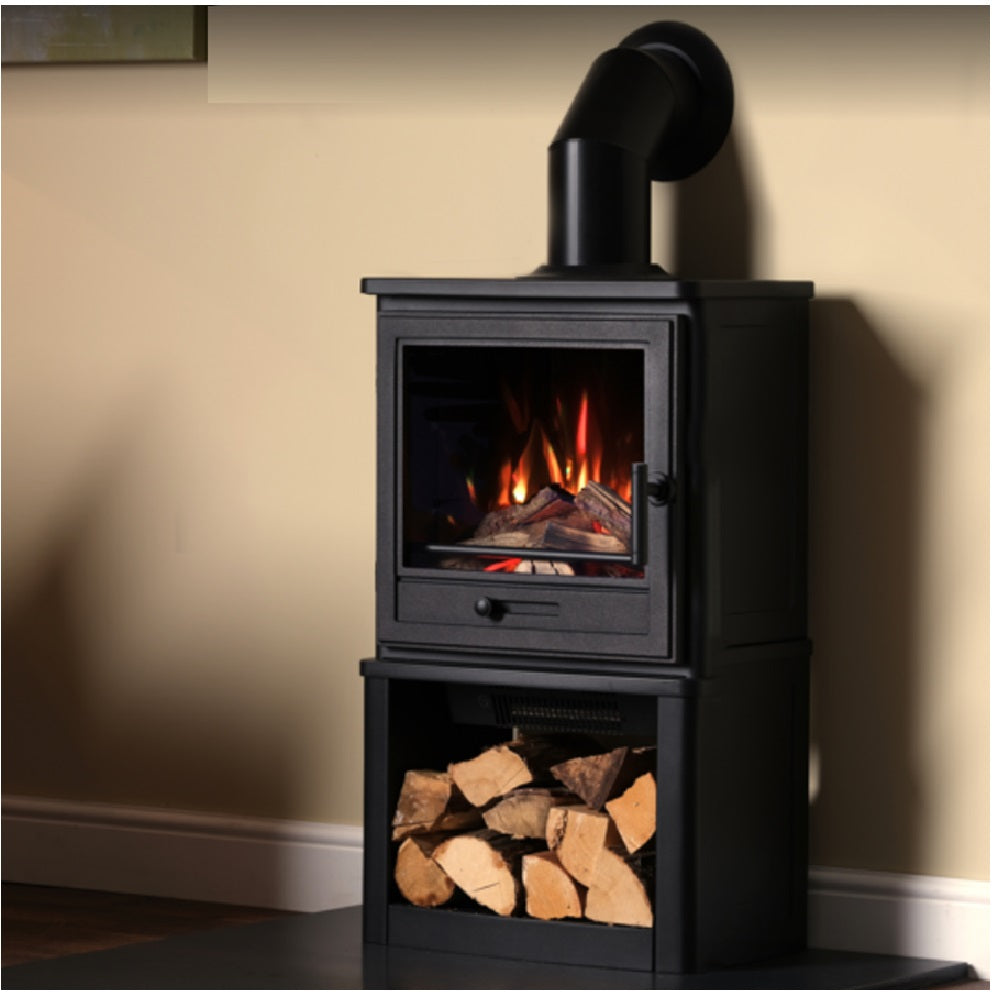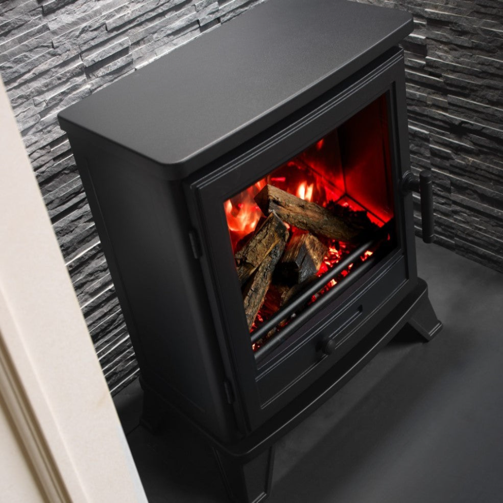 Penmann Effect Electric Log Effect Stove - Cast Matt Black