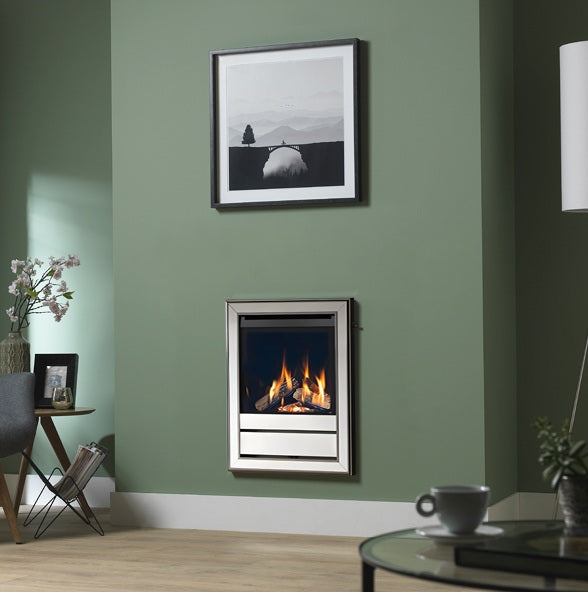 Wildfire Ravel 400 HE Log Effect Hole in The Wall Slide Control Chrome Chinmey Gas Fire