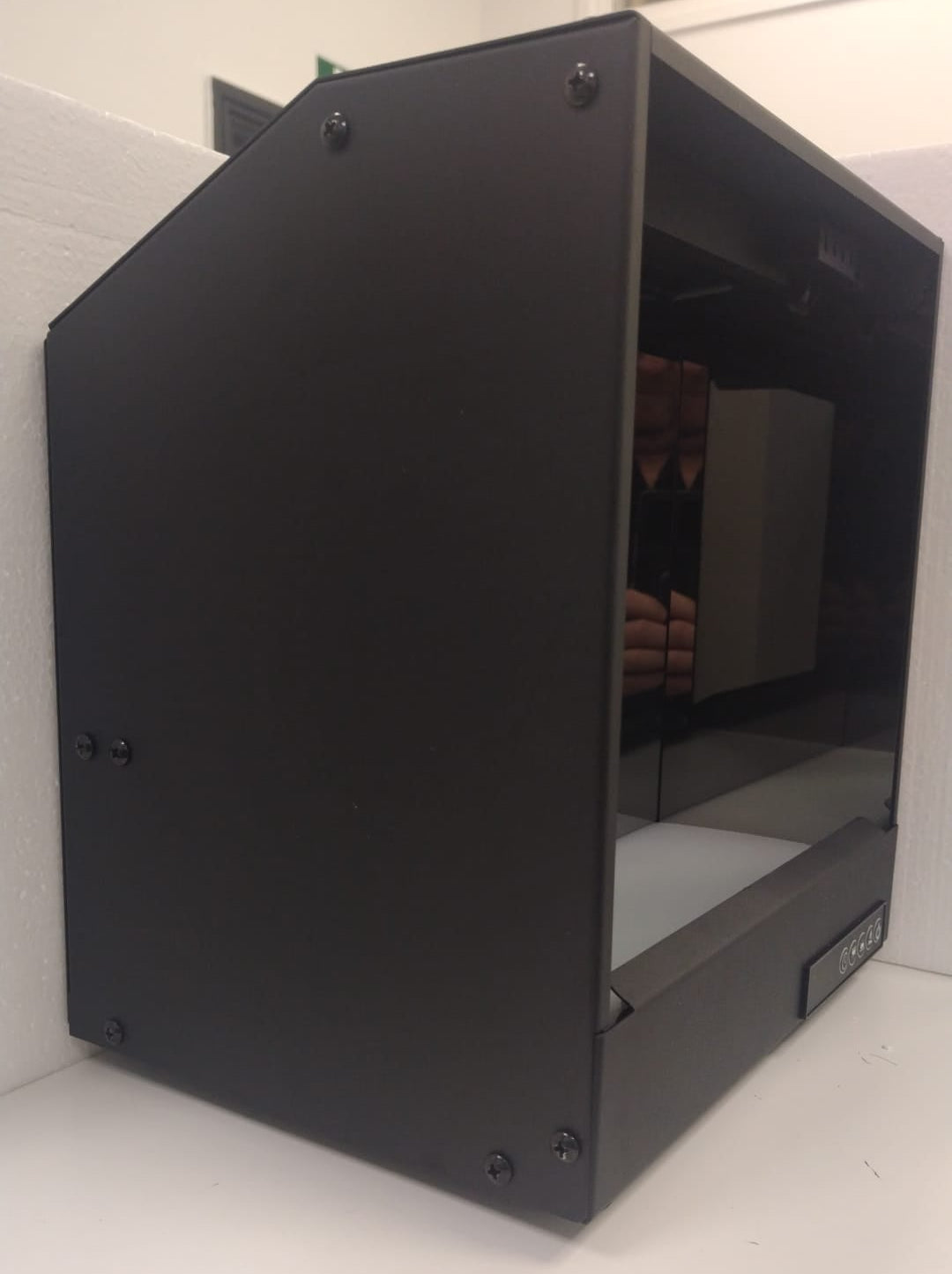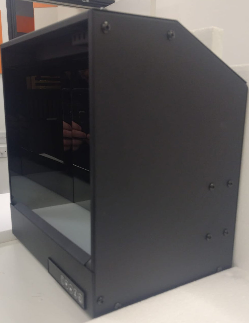 Semi-mirrored side panels creating infinite depth and visual richness