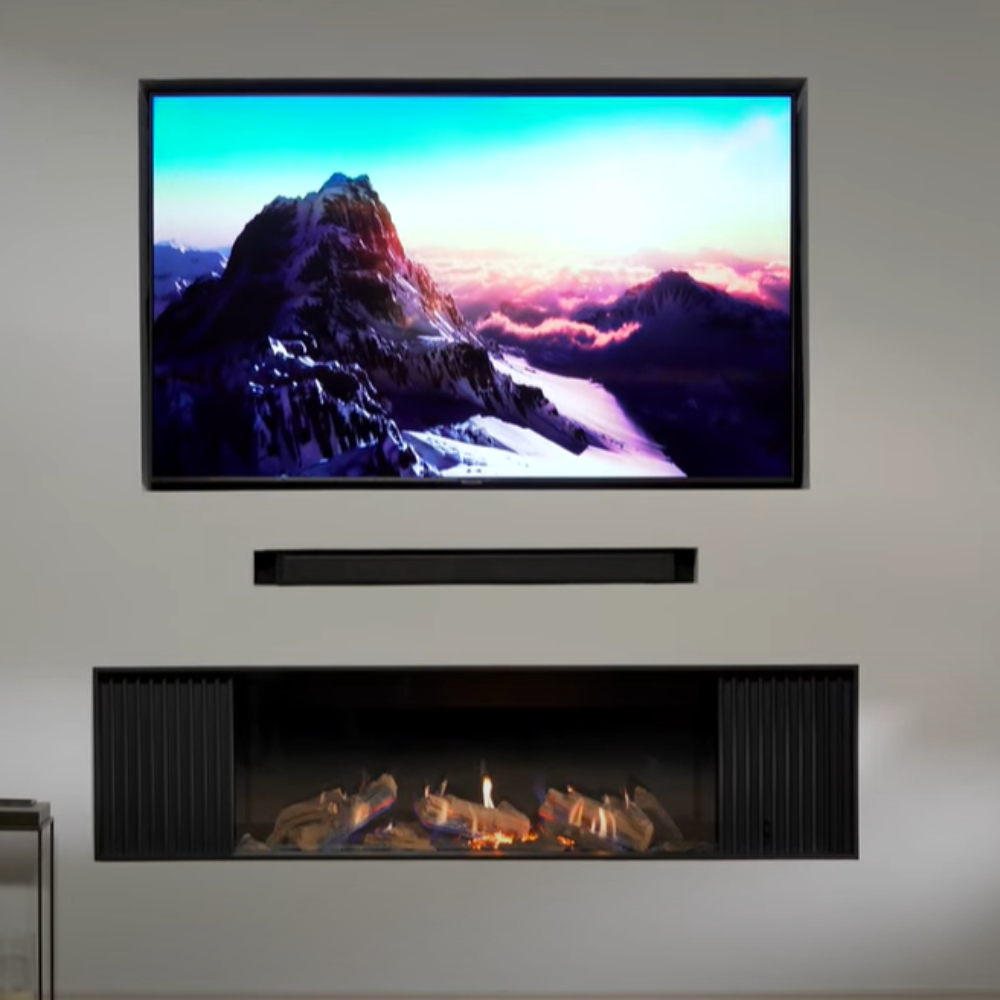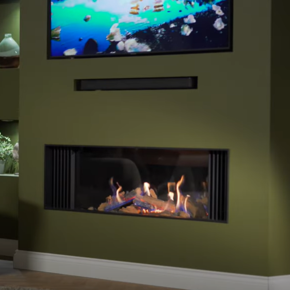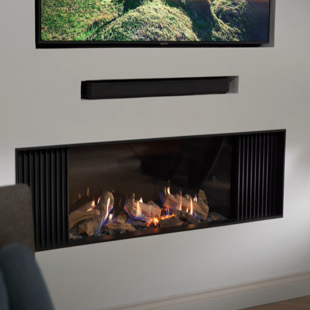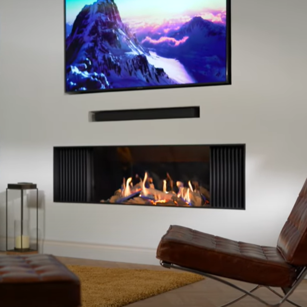 A convection system forces cooler air through the side grills and up through side outlets at the top of the chimney breast, or through a stylish linear outlet above the television.